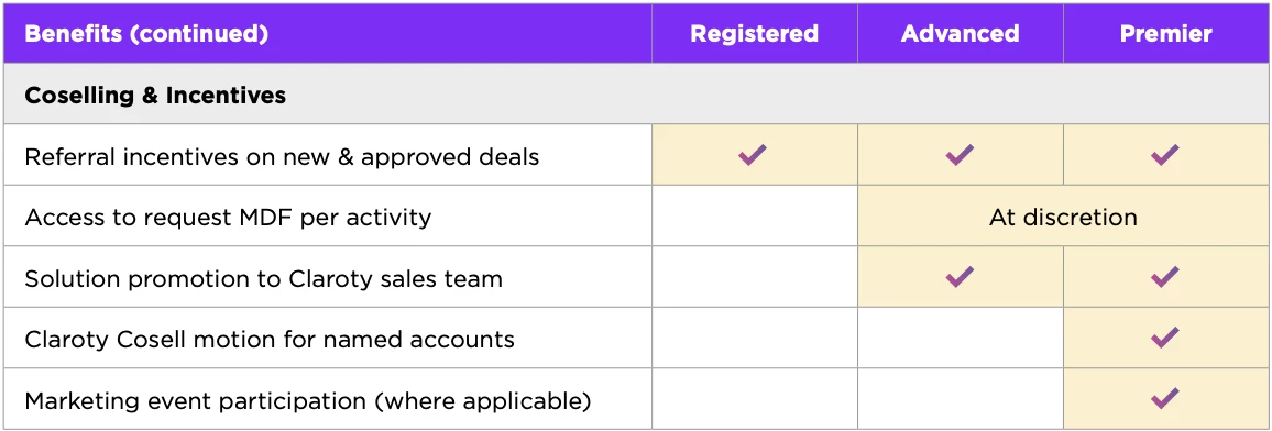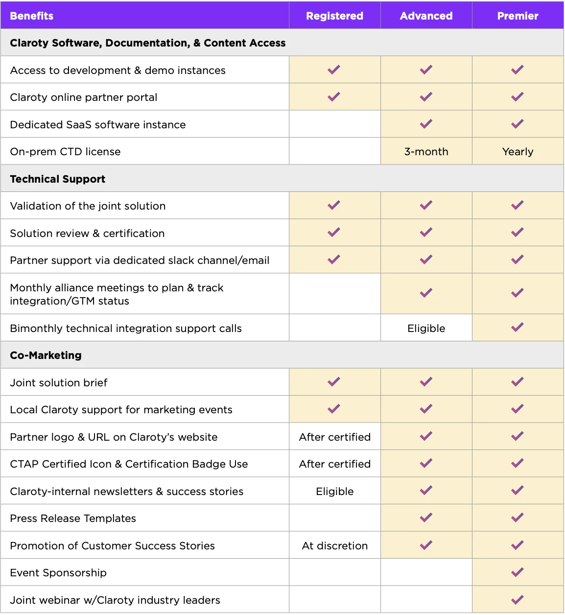 • Listing on Claroty’s website and/or other marketing materials as a Technical Alliance member upon integration certification
